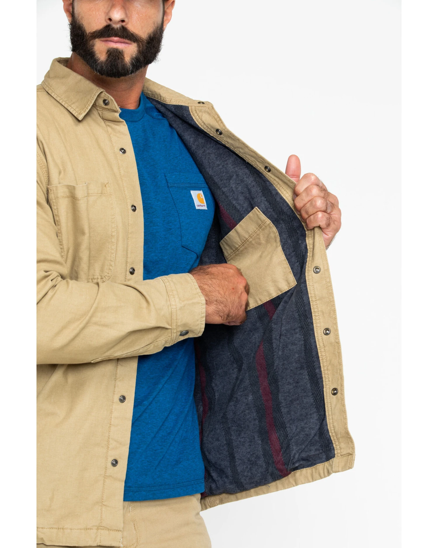 - Left chest secure zippered pocket with sewn-on Carhartt label